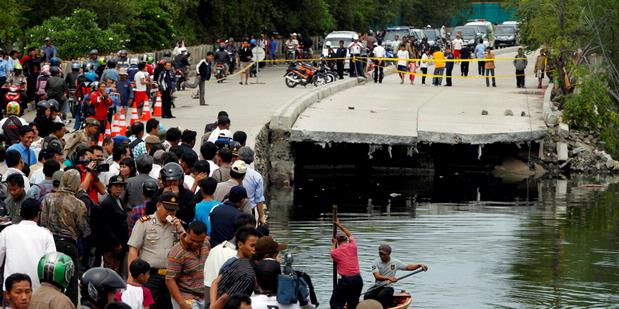Direktur Eksekutif Indonesia Water Institute Firdaus Ali, Sabtu (18/9/2010) di Jakarta Pusat, mengatakan, amblesnya badan jalan beton itu didahului penurunan permukaan tanah. Faktor abrasi air laut mempercepat amblesnya badan jalan itu.